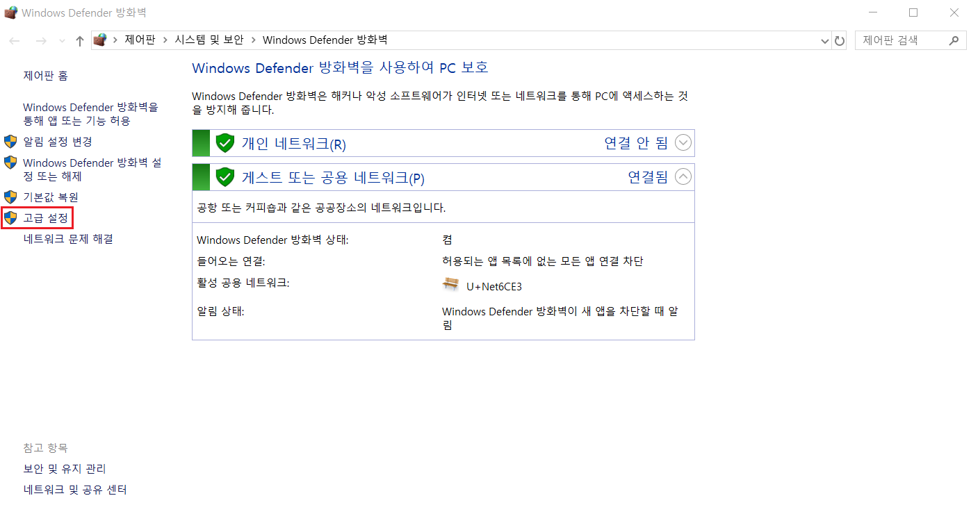 1. 방화벽을 실행하고 '고급 보안이 포함된 Windows Defender 방화벽'을 실행합니다.
