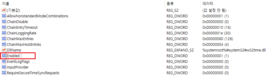 컴퓨터\HKEY_LOCAL_MACHINE\SYSTEM\CurrentControlSet\Services\W32Time\TimeProviders\NtpServer