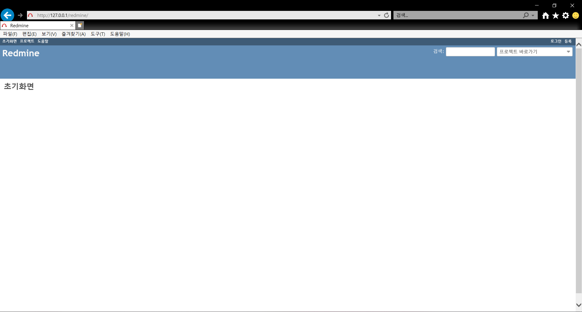 17. 레드마인 설치 완료입니다. 수고하셨습니다. 설치할 때 입력했던 관리자 계정으로 로그인하시면 됩니다.