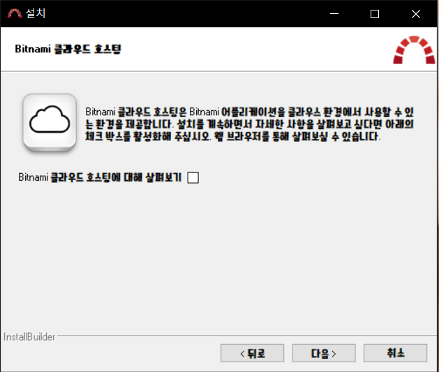 10. Bitnami 클라우드 호스팅 설정입니다. 저는 필요 없어서 체크 안했습니다.