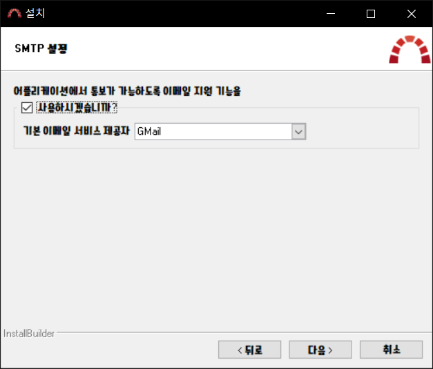 8. SMTP 사용 여부를 설정합니다. 레드마인은 각각 지정된 이메일로 알림을 보낼 수 있습니다.