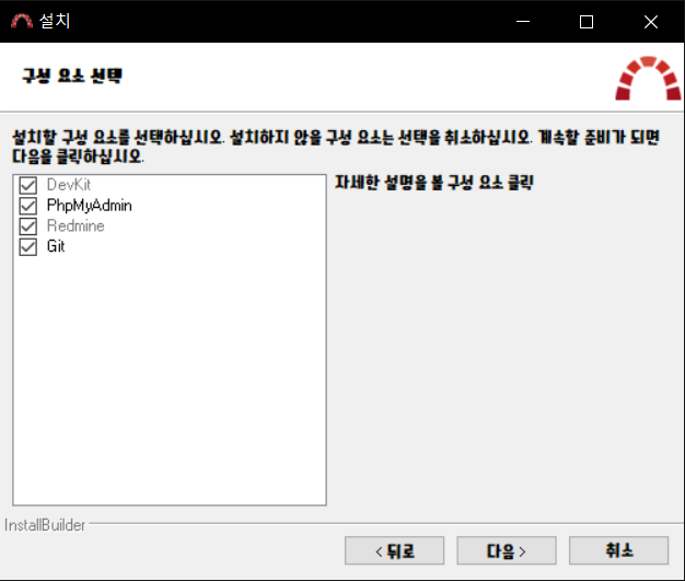 4. 구성요소를 추가할 수 있습니다. 불필요하면 그냥 체크 해제하셔도 됩니다.