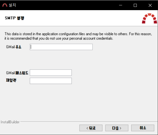 9. 위에서 말했던 알림 메일을 보낼 이메일 주소를 적습니다. 실제 주소와 비밀번호를 입력합니다.