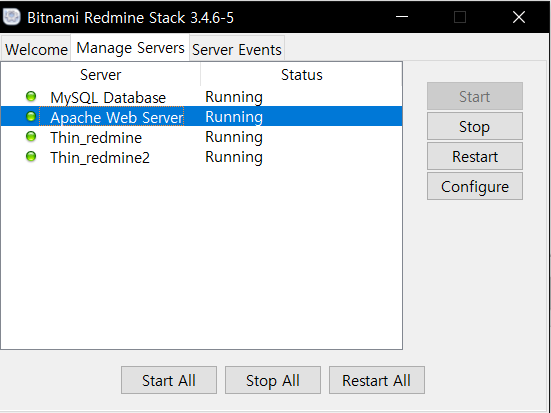 14. Bitnami Redmine Stack 프로그램이 실행됩니다. 시작에서 검색해도 실행할 수 있습니다.