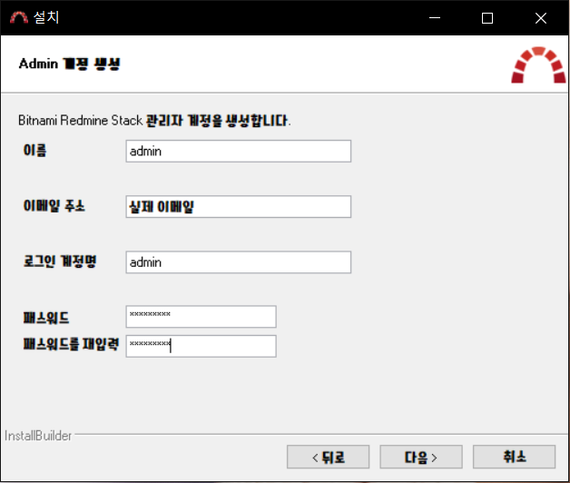 6. 관리자 계정의 개인 정보를 입력합니다.